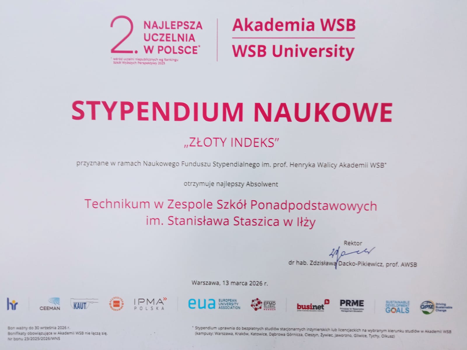 W czasie gali dyplomy odebrały delegacje pięciu najlepszych liceów i pięciu najlepszych techników na Mazowszu. Drugie miejsce zajęło Technikum w Zespole Szkół Ponadpodstawowych im. Stanisława Staszica w Iłży a dyplom oraz stypendium naukowe dla najlepszego absolwenta „Złoty Indeks” odebrał w imieniu Dyrektora Szkoły, Kierownik Kształcenia Praktycznego p. Mirosław Gut.